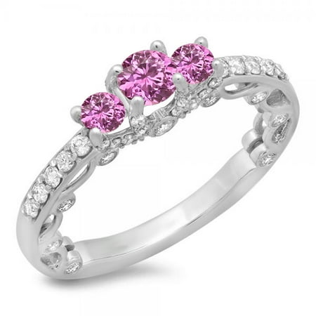 This lovely ring feature pink sapphire & white diamonds in Three Stone Classic setting. All stones are sparkling and 100% natural. All our products with FREE gift box and 100% Satisfaction guarantee. SKU # DR3057-2200