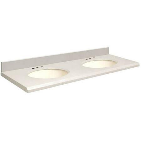 <br /> <b>Transolid Quartz 61" x 22" Double Sink Bathroom Vanity Top with Beveled Edge, 8" Contour and Biscuit Bowl, Available in Various Colors:</b> <ul> <li>Transolid engineered quartz is produced from 93 percent quartz under extreme high pressures to yield a top that is hard, stain and heat resistant with a consistent color throughout</li> <li>Transolid quartz tops never need sealing, polishing or reconditioning and are practically care-free</li> <li>They are exceptionally hard, making them resistant to cracks, chips, scratches and stains for years of trouble-free beauty</li> <li>All include an undermount oval china bowl and 4" loose backsplash</li> <li>Pre-sealed protective coat adds durability and stain resistance</li> <li>1-1/2" thick engineered quartz construction (including profile build-up)</li> <li>Includes 4" backsplash and undermount oval vitreous-china sink</li> <li>10-year limited warranty</li> </ul>