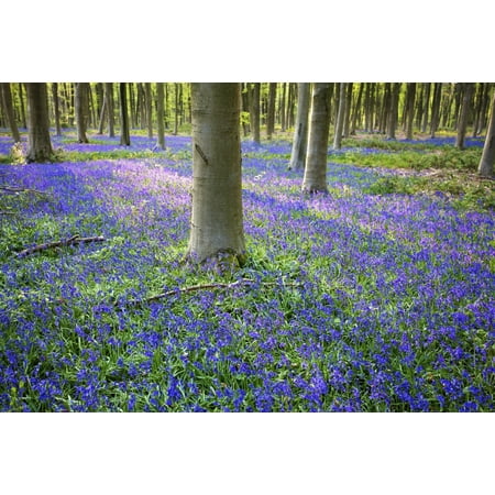 Chris Caldicott / Design Pics Stretched Canvas Art - Bluebells in the woods; Hampshire, England - Medium 19 x 12 inch Wall Art Decor Size.