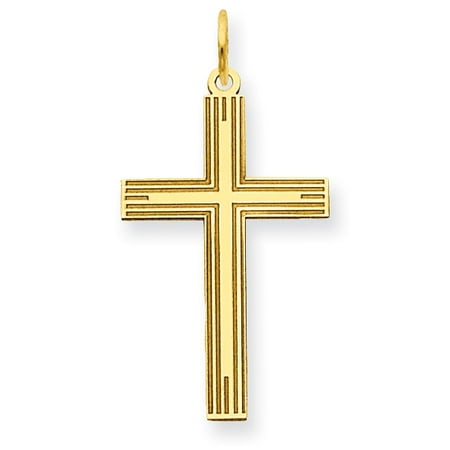 <ul> <li>14K Laser Designed Cross Pendant</li> <li>14k Yellow Gold</li> <li>Length: 26mm; Width: 13mm; Approximate Weight: 0.75grams</li> <li>Gift Box Included.</li> </ul>