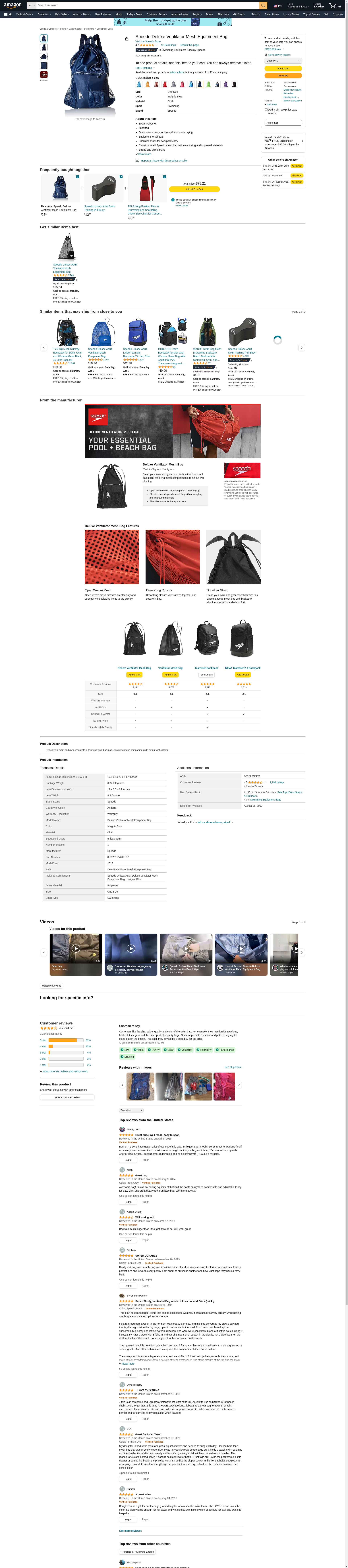 Speedo Unisex-Adult Deluxe Ventilator Mesh Equipment Bag , Insignia Blue