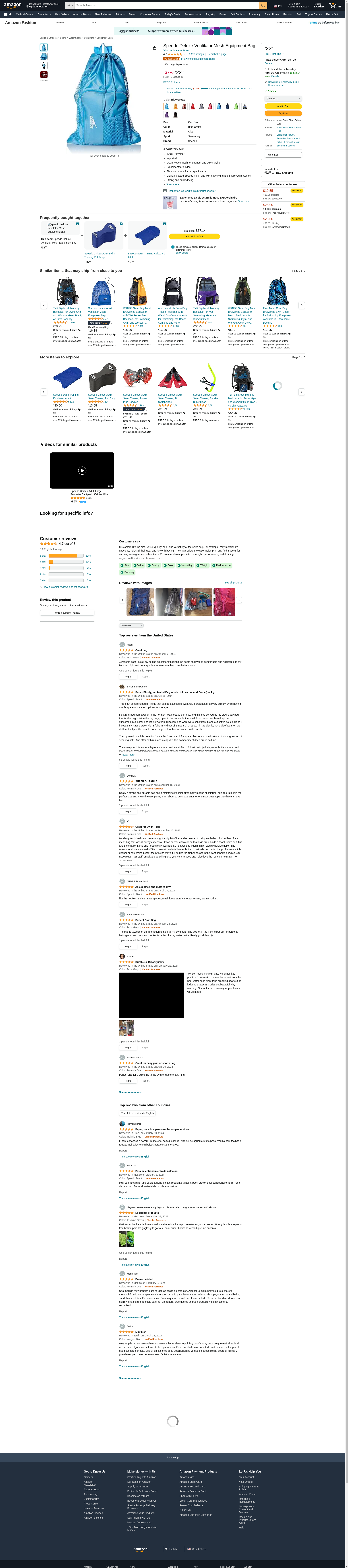 Speedo Unisex-Adult Deluxe Ventilator Mesh Equipment Bag,Blue Grotto