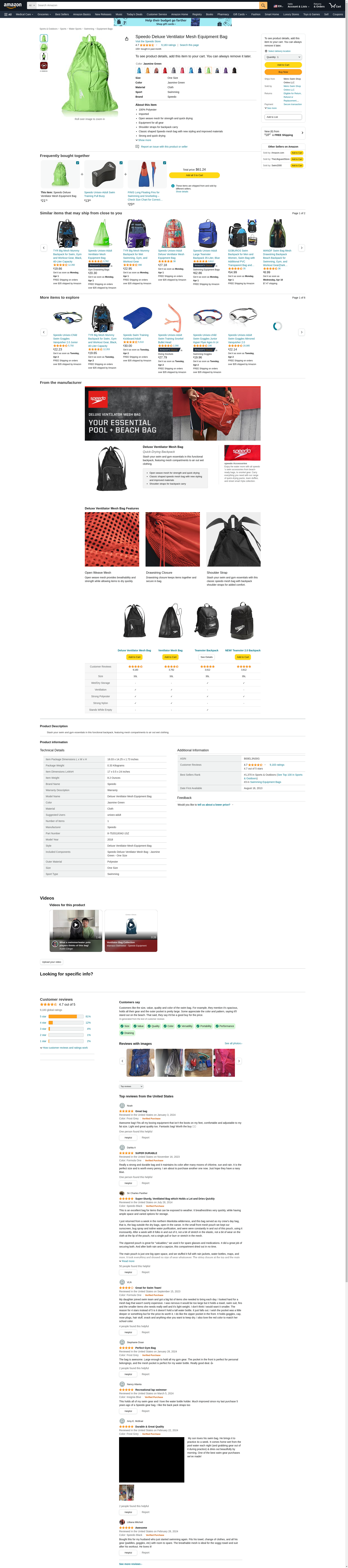 Speedo Unisex-Adult Deluxe Ventilator Mesh Equipment Bag Jasmine Green, One Size