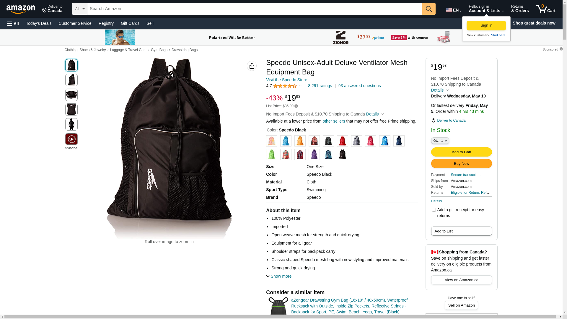 | Manufacturer | Speedo Swim Equipment |