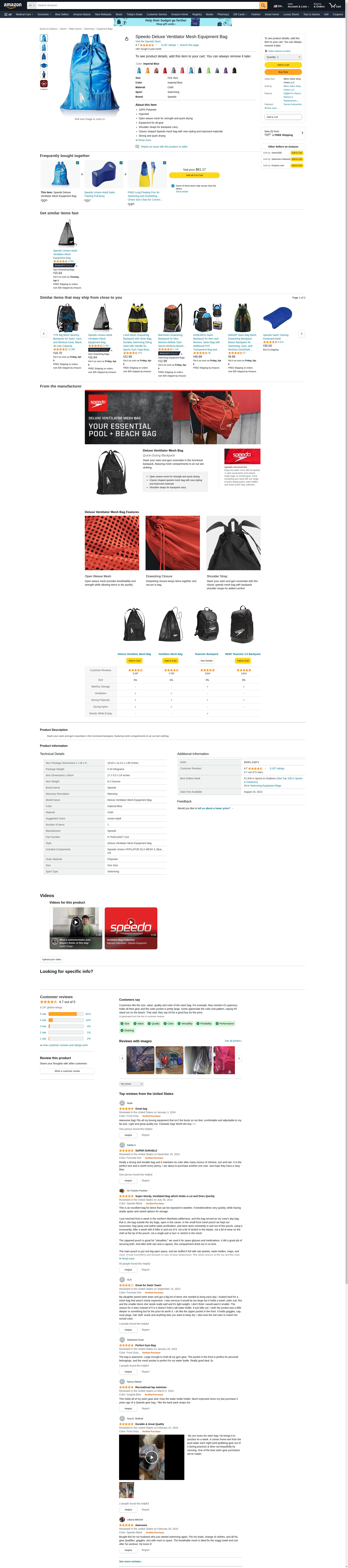 Speedo Unisex-Adult Deluxe Ventilator Mesh Equipment Bag , Imperial Blue