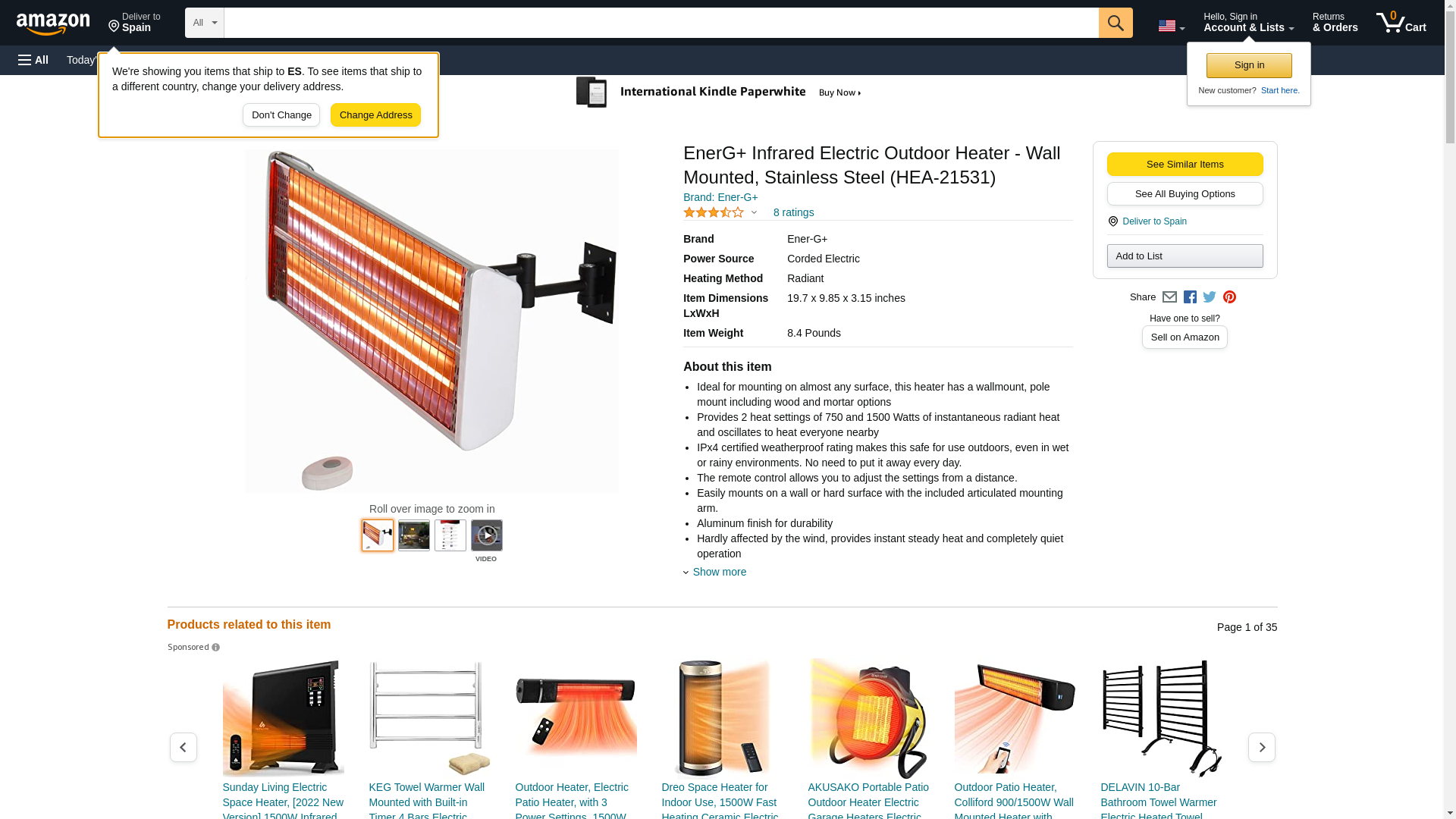 EnerG+ Infrared Electric Outdoor Heater - Wall Mounted, Stainless Steel (HEA-21531)