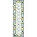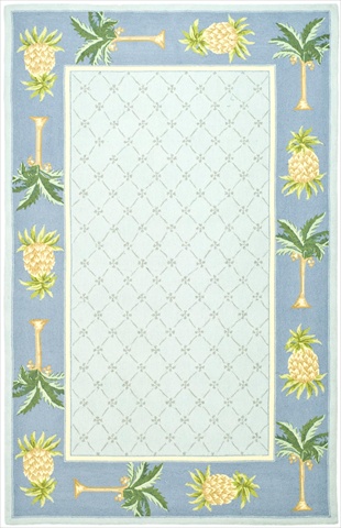 - This rug features a light blue background and blue border, and displays a stunning palm trees pattern in shades of green, blue, beige, and gold