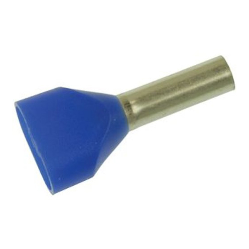 TERMINAL, FERRULE, 10 X 2.8MM, BLUE; Wire Ferrule Type:Twin Wire; Wire Size AWG Max:14AWG; Conductor Area CSA:2.5mm²; Pin Length:10mm; Insulator Colour:Blue; Product Range:-; Overall Length:19mm; Insulator Material:PP (Polypropylene)RoHS Compliant: Yes