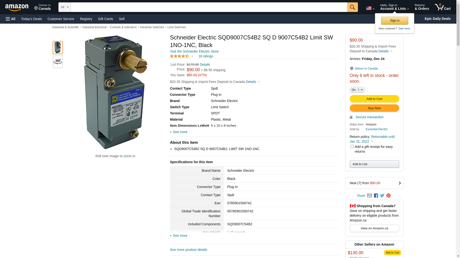 - SQD9007C54B2 SQ D 9007C54B2; LIMIT SW 1NO-1NC