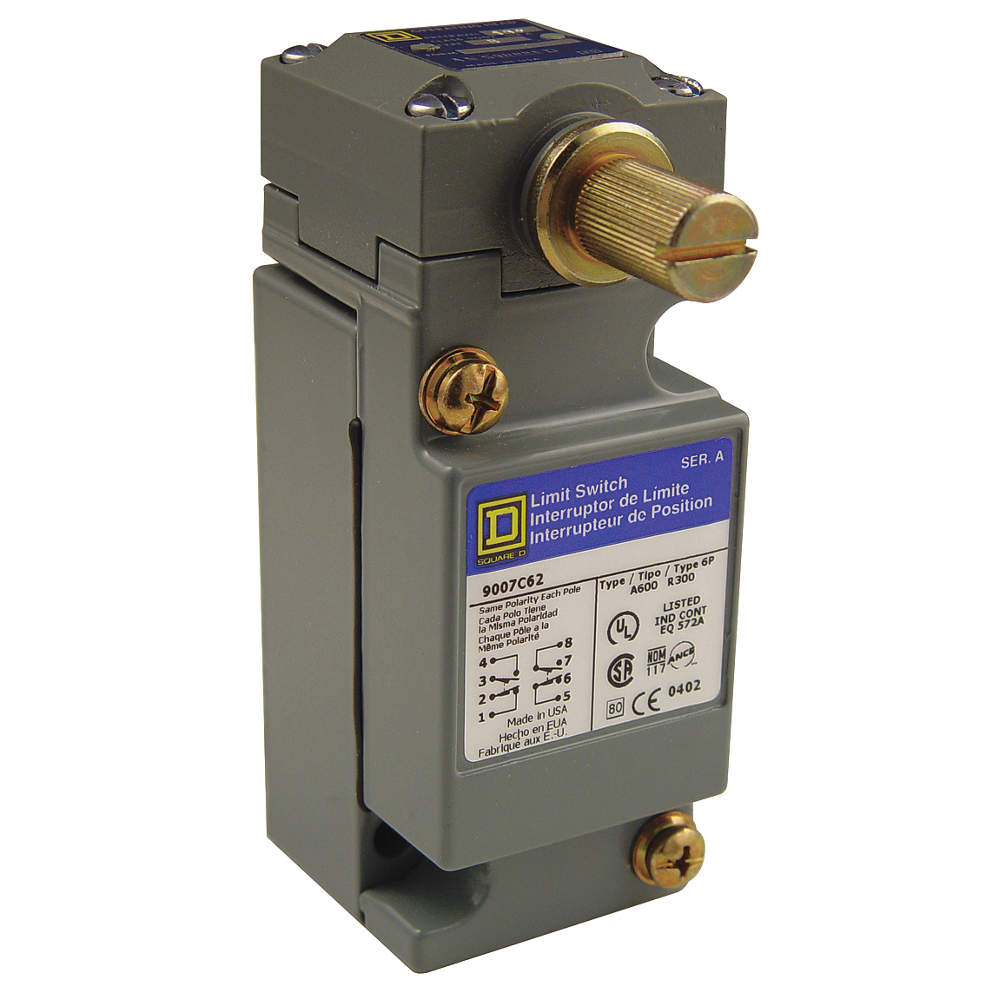 SQUARE D BY SCHNEIDER ELECTRIC 9007C62B2 LIMIT SWITCH, SIDE ROTARY, DPDT-2NC/2NO
