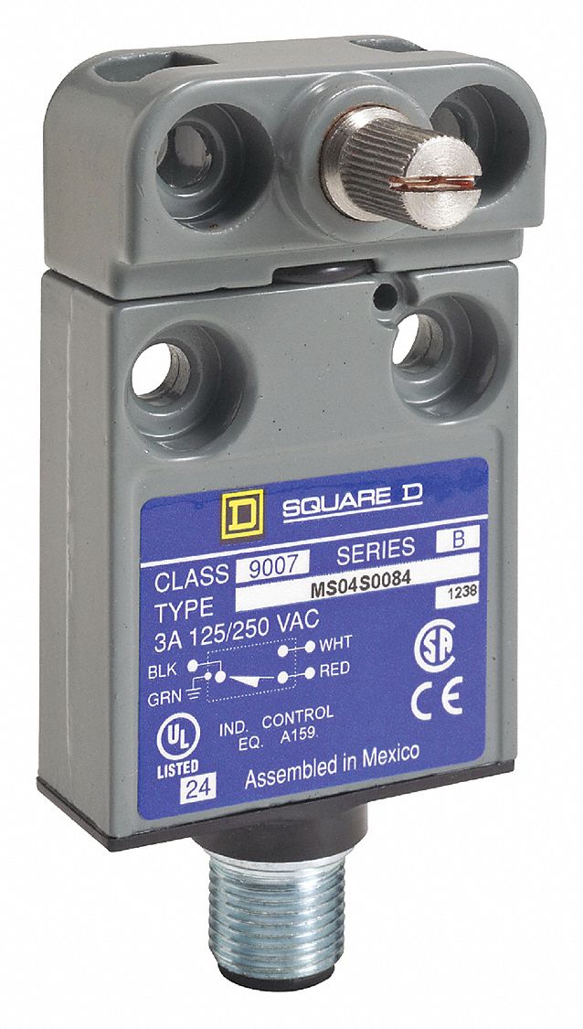 Square D Miniature Limit Switch, 240VAC/28VDC Voltage Rating, 6 AC Amps, Side Actuator Location - 9007MS04S0084