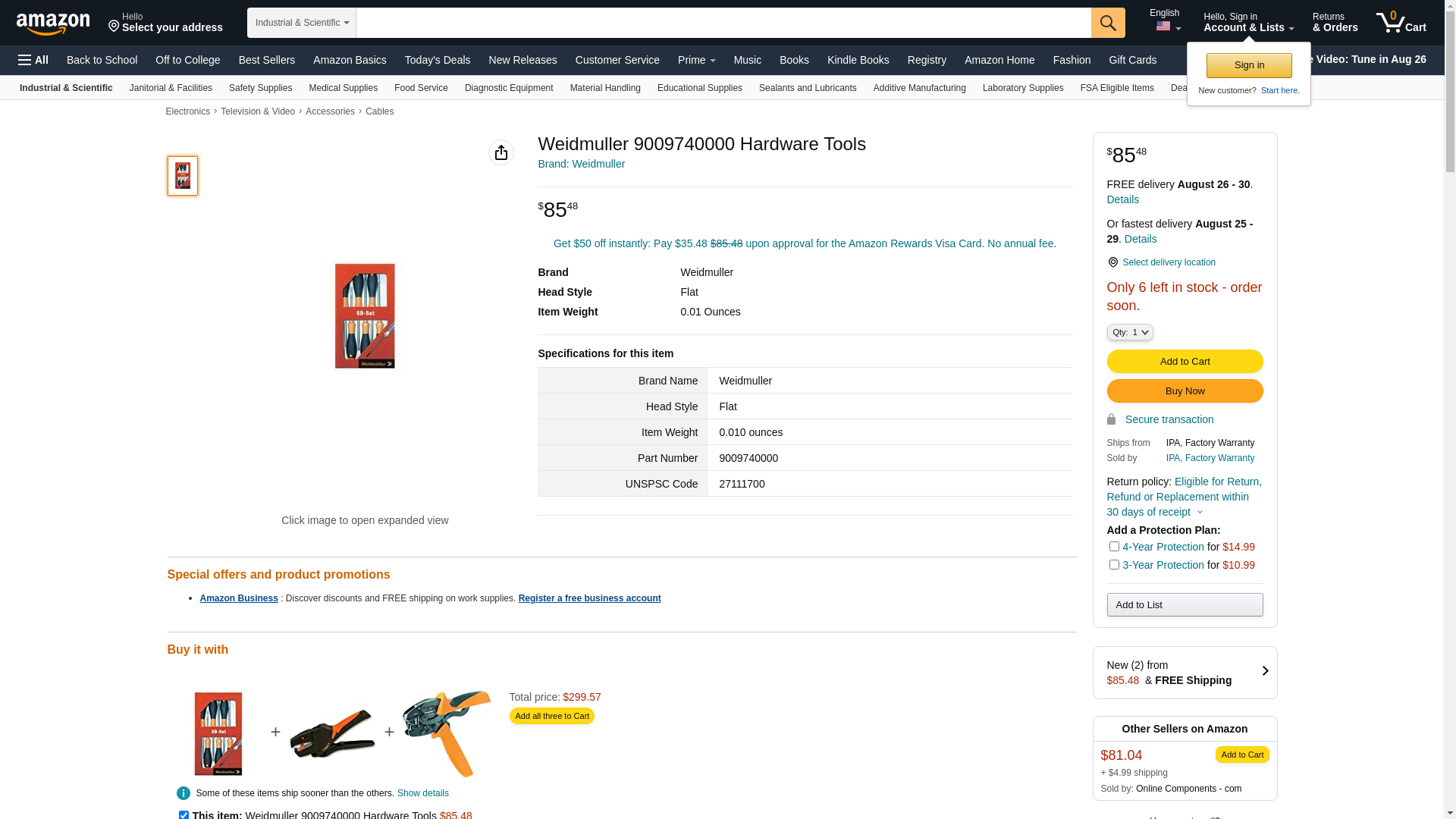 ![]() Digi-Key | 281-3087-ND | 1 | 6 | 1 | 1 @ $64.31, 5 @ $60.53, 10 @ $58.64, 25 @ $56.74 |