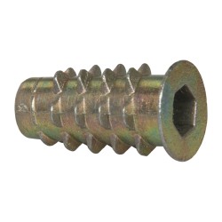 Inexpensive inserts for use in ready-to-assemble furniture, drawer pulls, etc. Install with hex drive wrench or E-Z Lok power drive tool. Die cast zinc alloy.