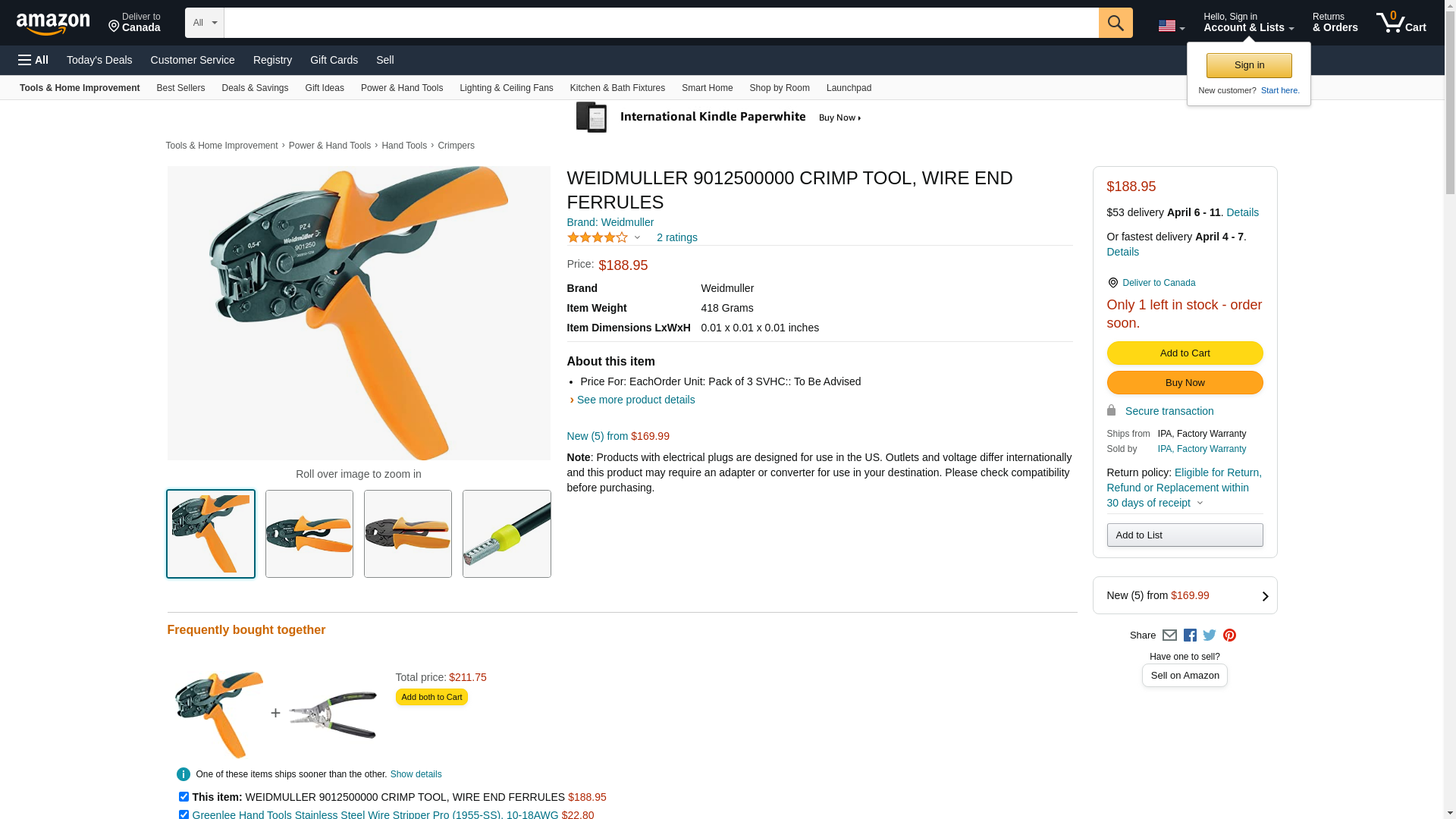 ![]() AmazonTP | B000ONJAY0 | 1 | 1 | 1 @ $169.25 |