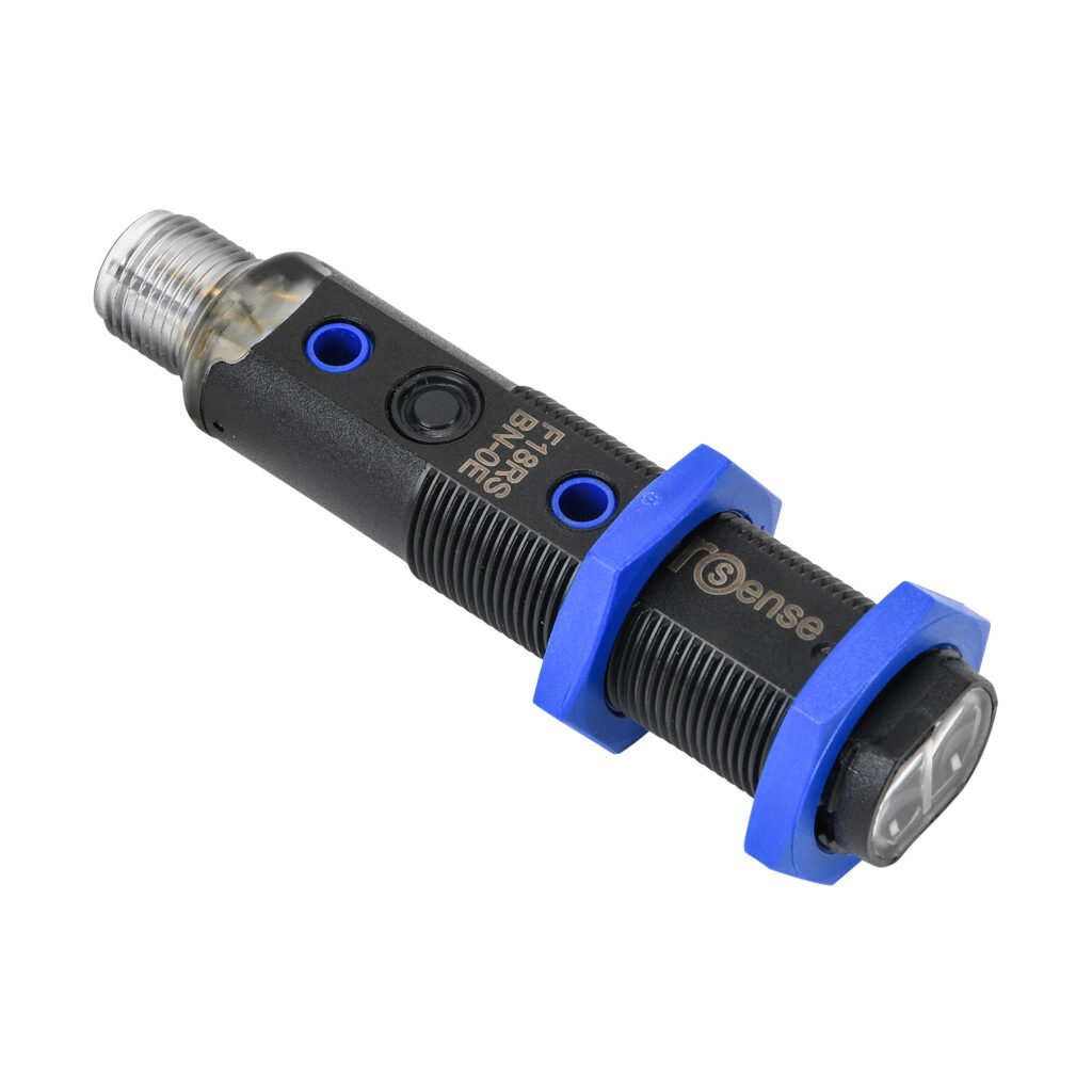 F18RS-BN-0E - ProSense photoelectric sensor, tubular, threaded, diffuse with background suppression, 50-150mm sensing distance, complementary...