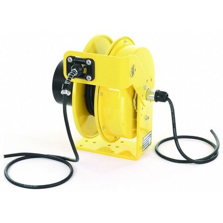 KH Industries RTF Series ReelTuff Industrial Grade Retractable Power Cord Reel, 16/4 SOOW Cable, 8 Amp, 50' Length, Yellow Powder Coat Finish