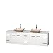 Wyndham Collection 80" Double Bathroom Vanity in White, White Man-Made Stone Countertop, Avalon Ivory Marble Sinks, and No Mirror