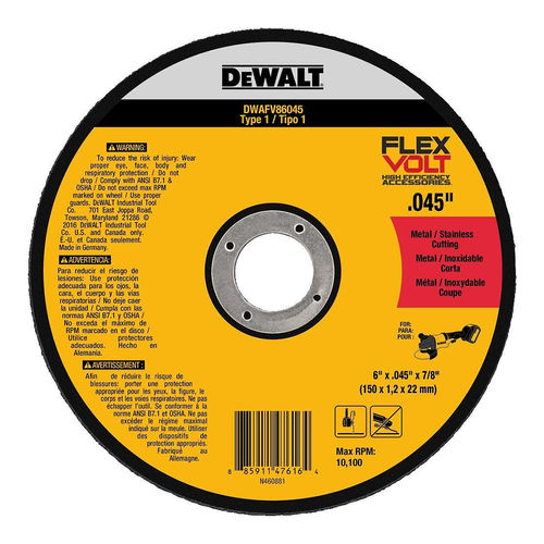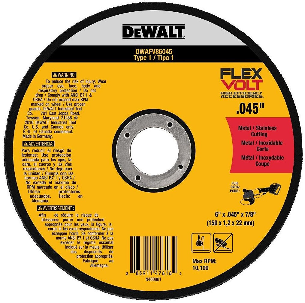 - DEWALT FLEXVOLT DWAFV86045 6" x .045 x 7/8" Cutting Wheel 2pcs. Made in Germany