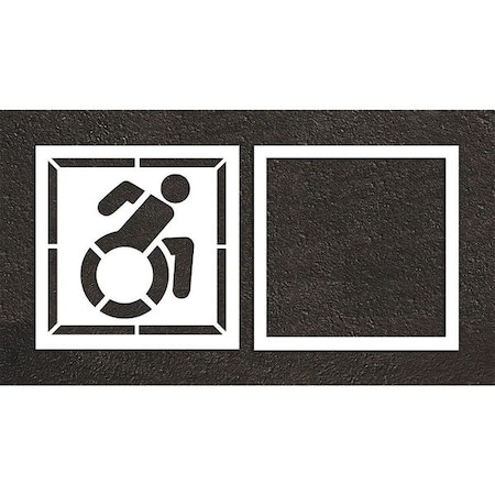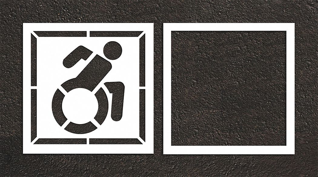 Pavement Stencil, Character Height 56 In., Character Width 55 In., Material Polyethylene, Thickness 0.063 In., Overall Height 130 In., Overall Width 64 In., Self-Adhesive No, Magnetic/Nonmagnetic Nonmagnetic, Reusable Yes, Number of Pieces 2, Color White, Stencil Type Symbol, Stencil Application Parking Lot, Stencil Character Handicap Symbol, Interlocking No, Duty Light