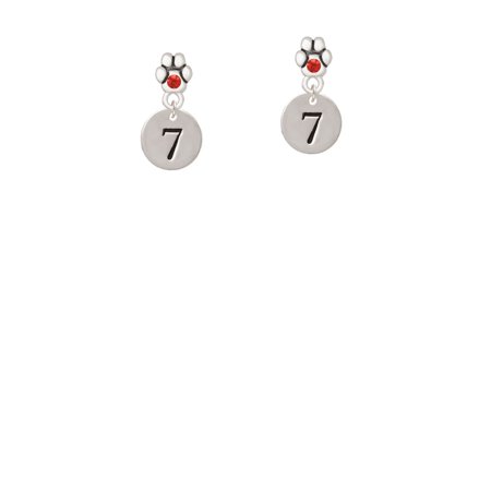 Silver Tone 7 - 1/2" Disc - Red Crystal Paw Earrings. Silver Tone Charm. Charm size is approx. 0.5 x 0.5 x 0.07 inches (HxWxD) including loop. Paw Earring is approx. 0.34 x 0.30 x 0.08 inches (HxWxD) not including dangle. Earrings have steel posts. Earring backs are Bullet ''Clutch'' Style with Plastic Pad. Earring crystal colors available: Red, Yellow, Green, Blue, Purple, Light Pink, Black, and Clear. Great for sports teams! Lovely gift for dog and cat lovers. PLEASE NOTE: Our products are lead safe, but are not intended for children 14 years and younger.