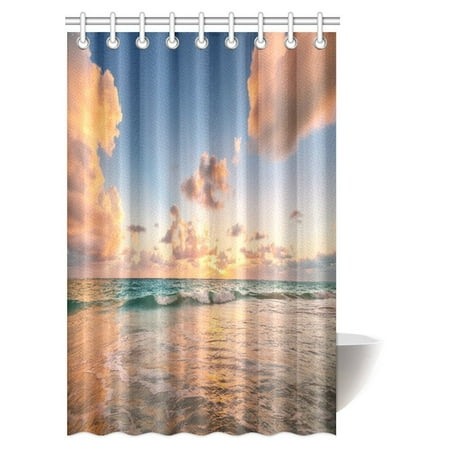 <ul> <li>Designed for standardized bath tubs, fitted with C-shaped curtain hooks.</li> <li>Tough durable waterproof polyester fabric.</li> <li>One-side printing.</li> <li>Easy cleaning, machine/hand washable.</li> </ul>