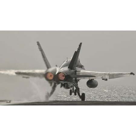 Giovanni Colla/Stocktrek Images Stretched Canvas Art - An F/A-18C Hornet takes off from USS George H.W. Bush. - Medium 19 x 11 inch Wall Art Decor Size.