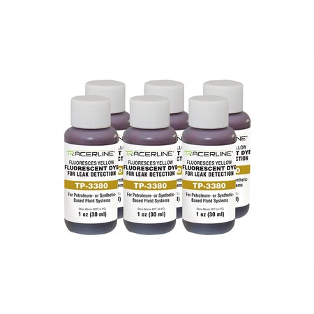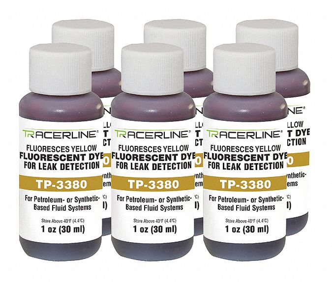 UV FLUORESCENT LEAK DETECTION DYE, YELLOW, 1 OZ, OIL BASED, PLASTIC, PKG 6