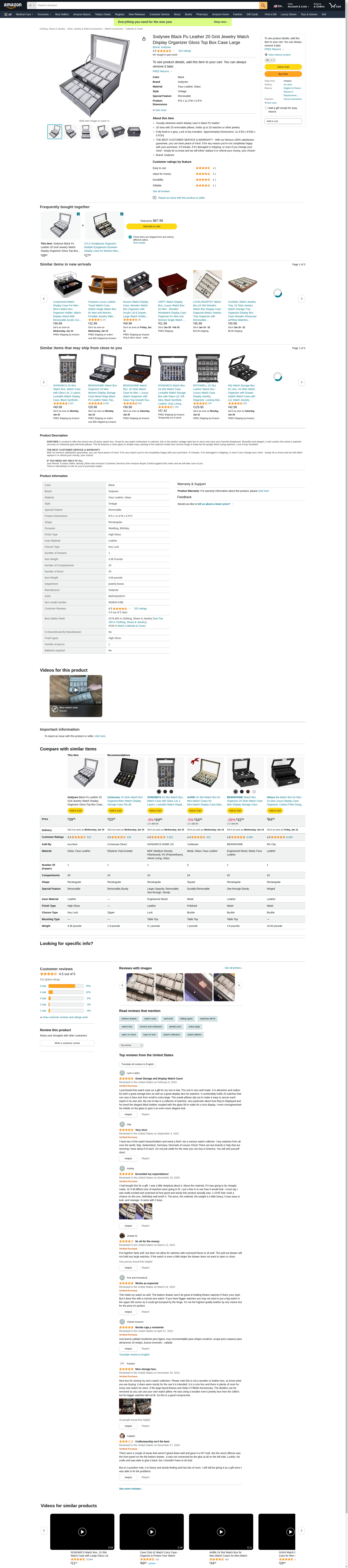 Buy Sodynee Black Pu Leather 20 Grid Jewelry Watch Display Organizer Gloss Top Box Case Large: Cabinets & Cases - Amazon.com ? FREE DELIVERY possible on eligible purchases