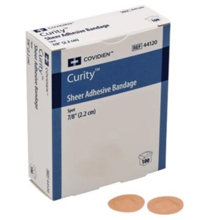 Curity Sheer Plastic Adhesive Bandages, Round Spot, 0.88 x 0.88, Clear, 100/Box (KCFB0193LF)