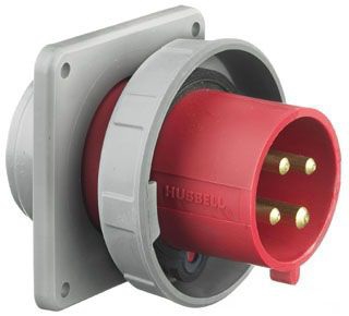 Hubbell HBL463B6W Inlet, 3 Pole and 4 Wire, 63 amp, 380/415V, Watertight