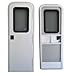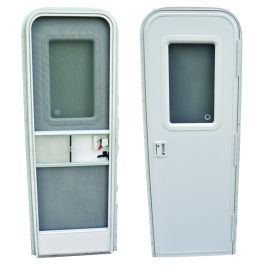 Towable Entry Door- Radius: Polar White 1000 fiberglass skin, white flush lock with deadbolt 12 x 21 window with obscure glass and white frame, all white aluminum extrusion.