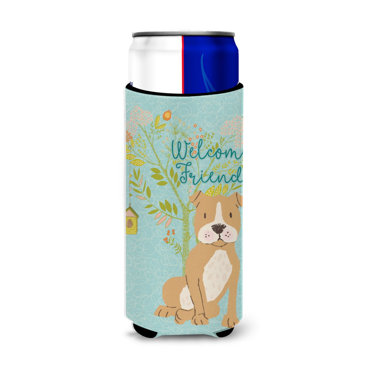 Carolines Treasures BB7624MUK Welcome Friends Brown Staffie Michelob Ultra Hugger for Slim Cans
