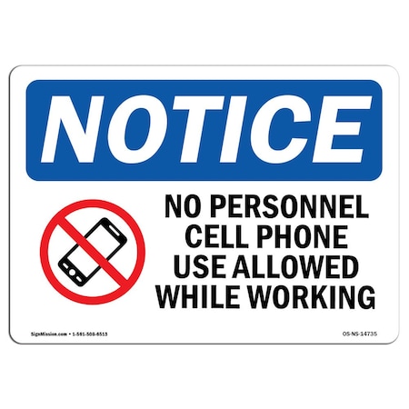 OSHA Notice Sign - No Personal Cell Phone Use Allowed | Rigid Plastic Sign | Protect Your Business, Construction Site, Warehouse & Shop Area | Made in The USA