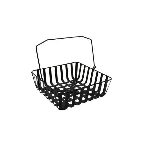 GET Harvest Baskets 12" x 12" x 4 1/4" Square Black Iron Serving Basket with Swinging Handle