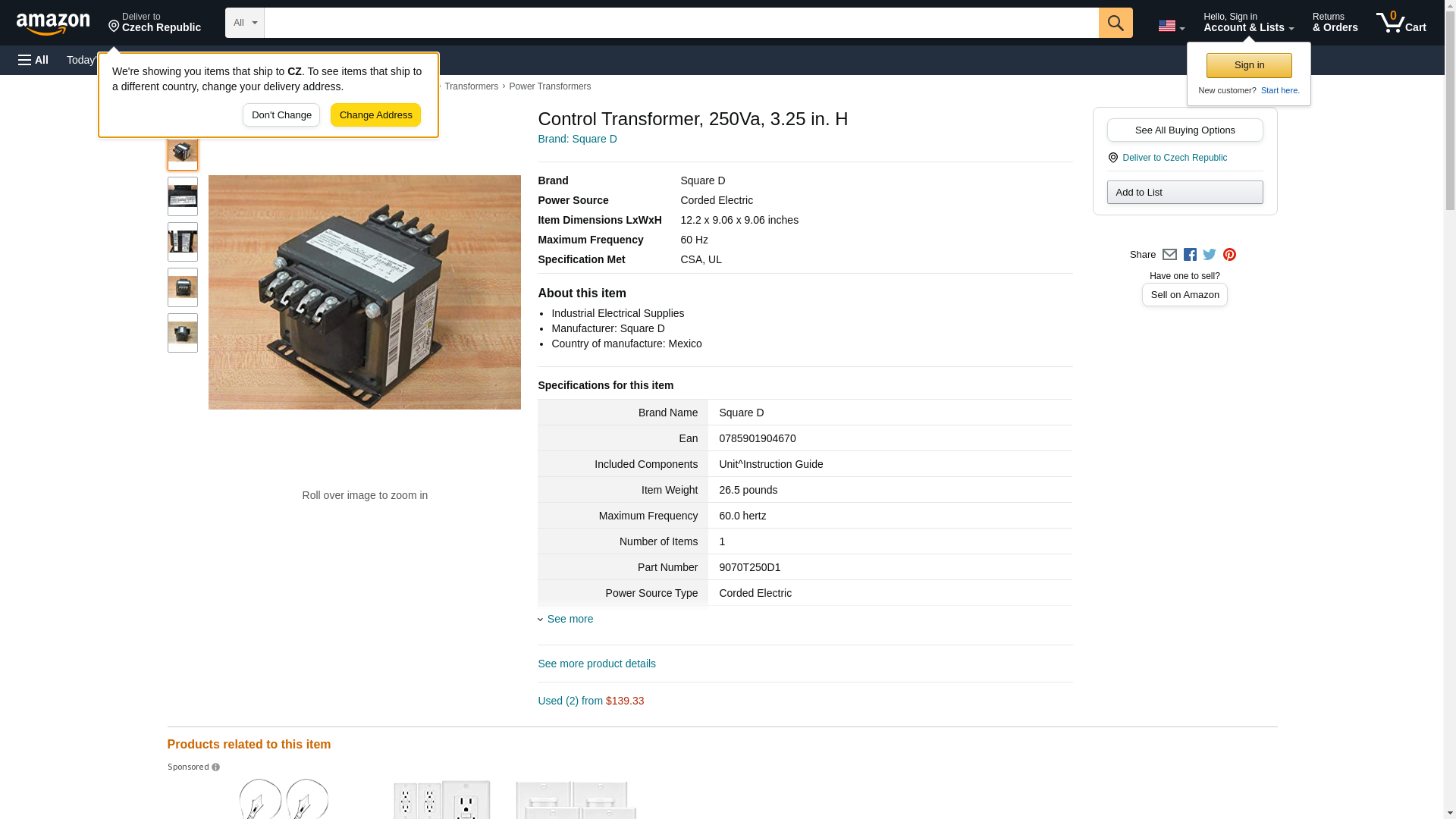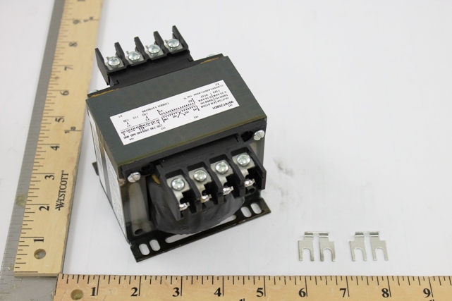 Designed with low impedance windings for excellent voltage regulation, this transformer can accommodate the high inrush current associated with contactors, starters, solenoids, and relays. It is copper wound and vacuum impregnated with varnish.<br /><br /> Item - Transformer: Control Transformer<br /> Input Voltage - Transformer: 240VAC,480VAC<br /> Output Voltage - Transformer: 120VAC<br /> VA Rating - Transformer: 250VA<br /> Protective Device: None<br /> Enclosure Style - Transformer: Open<br /> Mounting - Transformer: Foot<br /> Phase - Electrical: 1<br /> Hz - Electrical: 50 Hz, 60 Hz<br /> Temp. Rise: 80 Degrees C<br /> Enclosure Finish: Epoxy Resin Varnish<br /> Height: 3.25"<br /> Depth: 3.75"<br /> Width: 5.25"<br /> Standards: UL Listing, cUL Listing, CSA Approved, EN Listing<br /> Manufacturers Warranty Length: 1 yr.