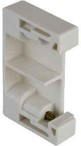 End thread clamp, polycarbonate, for use with DIN rail 35 mm., includes zinc-plated steel screws'