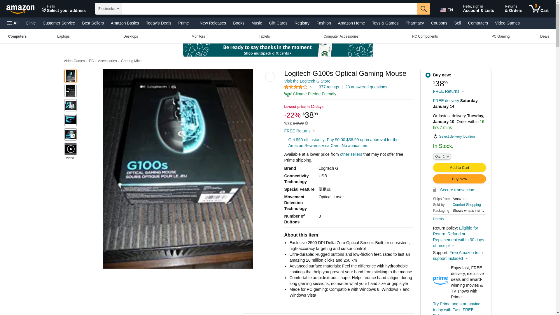 Logitech G100s Optical Gaming Mouse, 7.6 inches