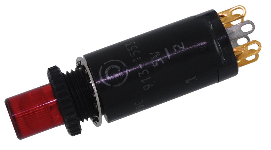 | Feature | <b>Price For:</b> Each<b>Order Unit:</b> Each\xa01 <b>Actuator / Cap Color:</b>: Red <b>Actuator Style:</b>: Round <b>Approvals / Standards:</b>: - <b>Contact Configuration:</b>: DPDT <b>Contact Current Max:</b>: 100 <b>Contact Voltage AC Nom:</b>: 125 <b>Contact Voltage DC Nom:</b>: 30 <b>IP Rating:</b>: Not Rated <b>Illumination Color:</b>: Red <b>Product Range:</b>: 913 Series <b>SVHC:</b>: To Be Advised <b>Switch Operation:</b>: (On) |