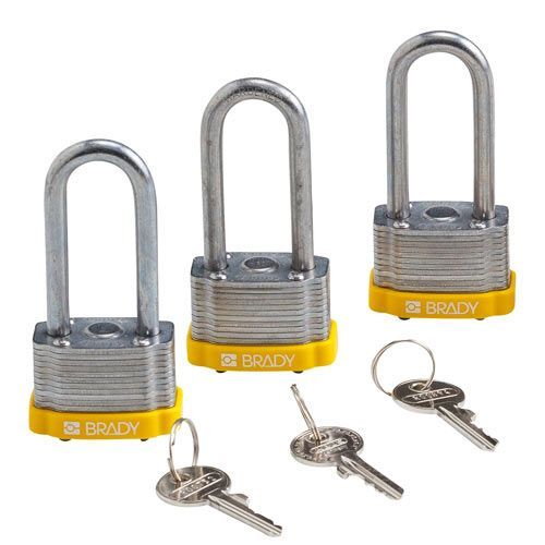 Brady 118981 Brady Key Retaining Steel Padlocks - 5-pin Cylinder, 2" Shackle Clearance, Keyed Alike, Yellow