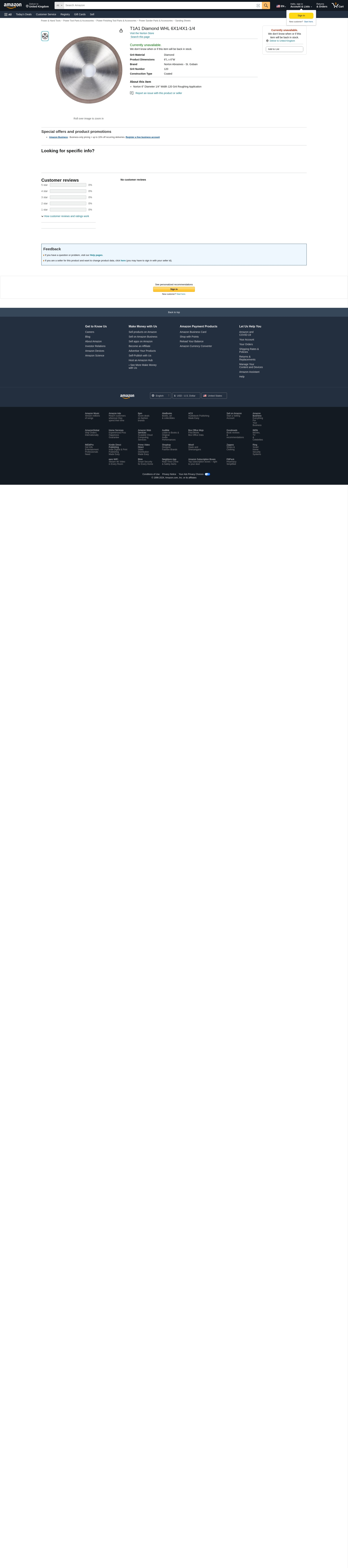 - Norton 6" Diameter 1/4" Width 120 Grit Roughing Application