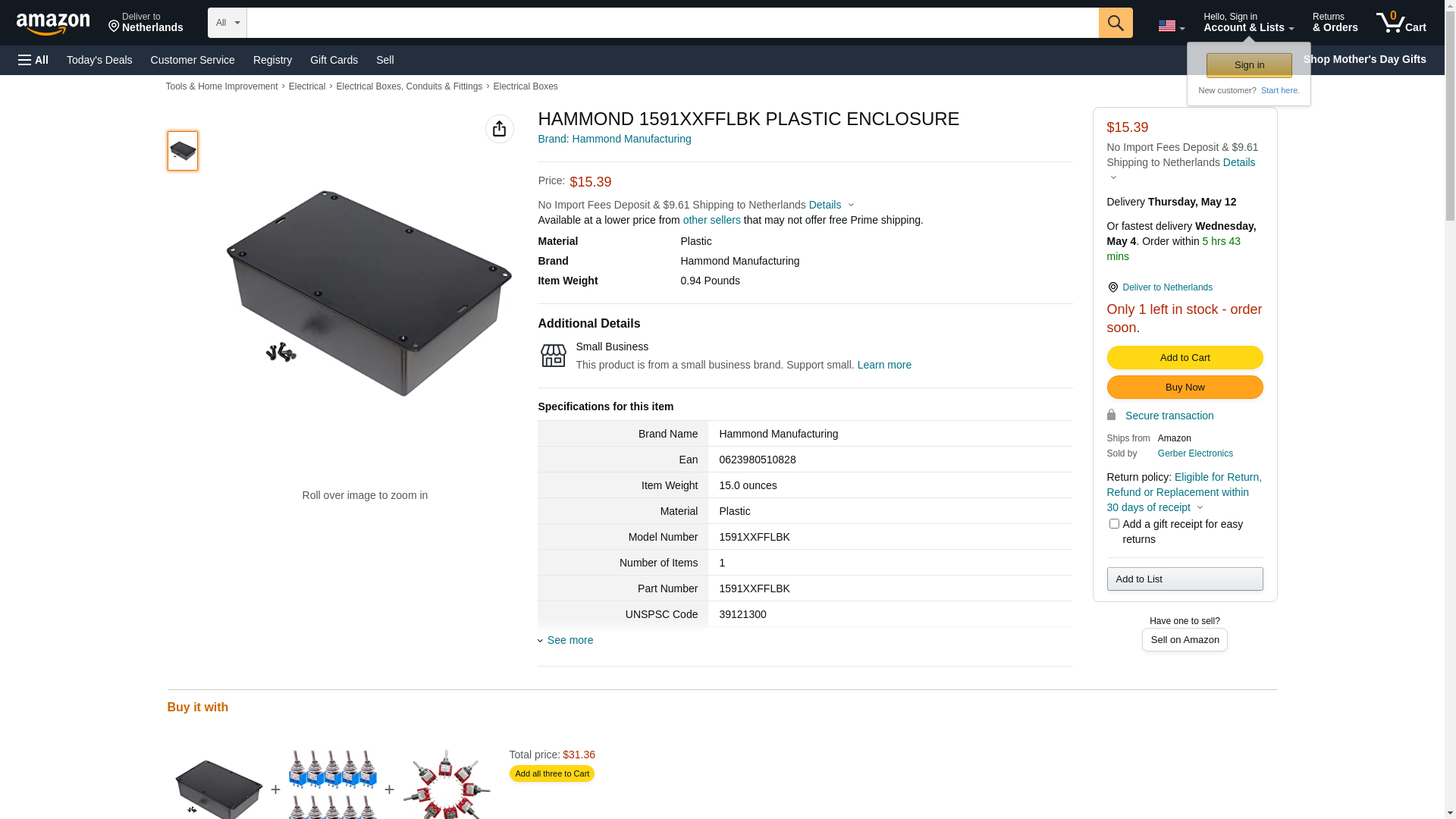 | Dale-Electric | 1591XXFFLBK | 1 | 1 | 1 @ $15.04 | |