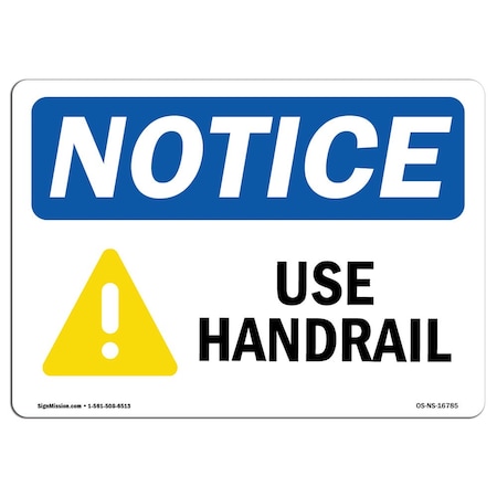 OSHA Notice Sign - NOTICE Use Handrail | Aluminum Sign | Protect Your Business, Construction Site, Warehouse & Shop Area | Made in the USA