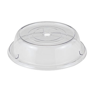 Camwear Camcover, inside dia. 10-13/16'', outside height 2-11/16'', lightweight polycarbonate, dishwasher safe, clear, NSF Features Brand: Camwear Manufacturer's Category: Cover, Plate Construction: Polycarbonate Color: Clear Dimensions: 2.688(H)