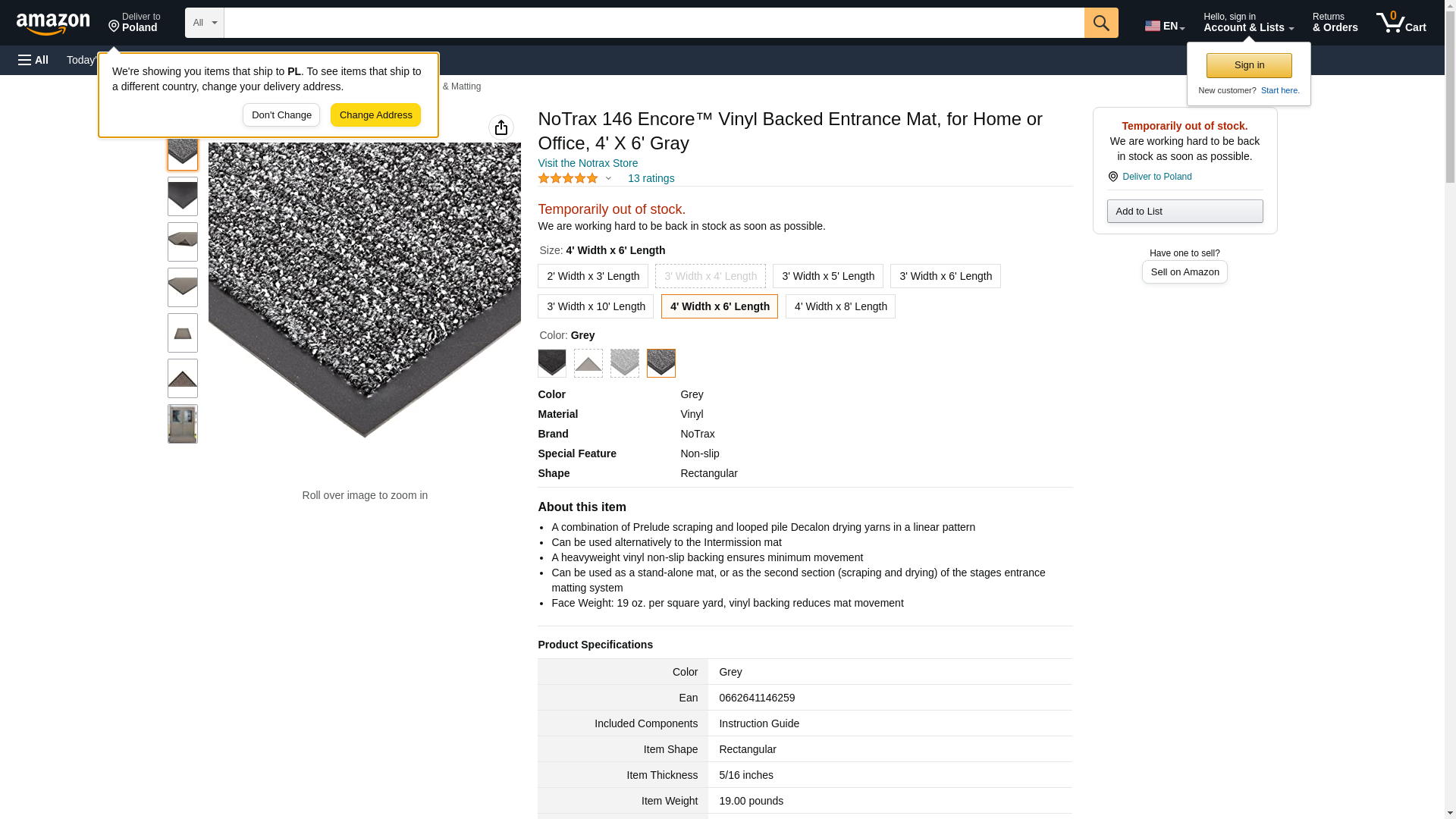 NoTrax 146 Encore™ Vinyl Backed Entrance Mat, for Home or Office, 4' X 6' Gray