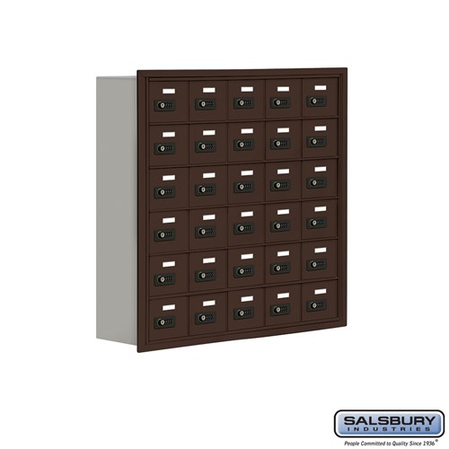 Cell Phone Storage Locker - 6 Door High Unit (8 Inch Deep Compartments) - 30 A Doors - Bronze - Recessed Mounted - Resettable Combination Locks
