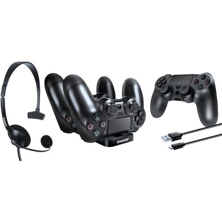 | Feature | "The PS4 Gamer's Kit is perfect accessory kit for any PS4 user and includes a dual charging dock, 10 foot charge and sync cable, a headset with crystal clear boom mic, and a protective premium silicone controller skin with textured joystick caps." |