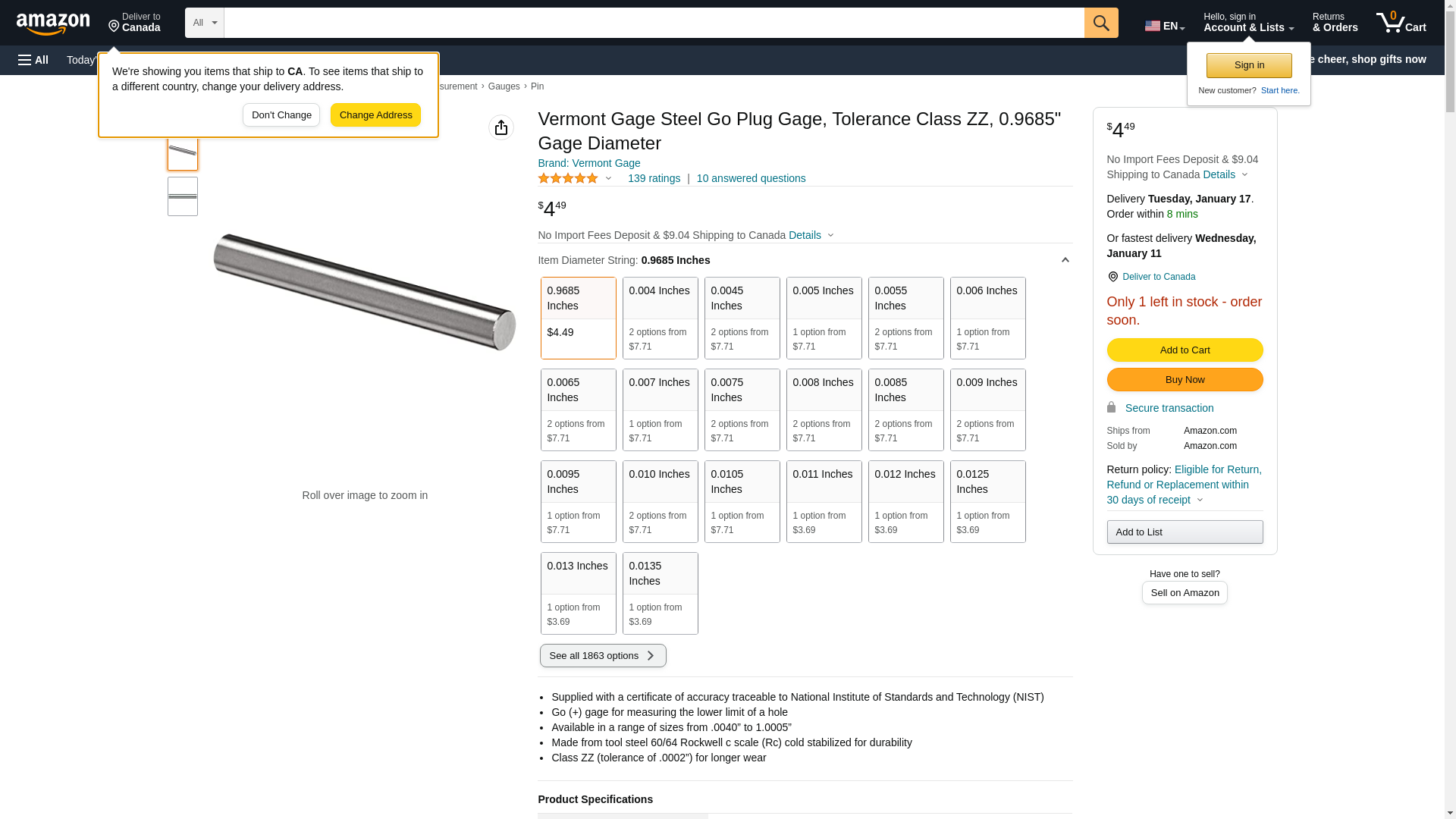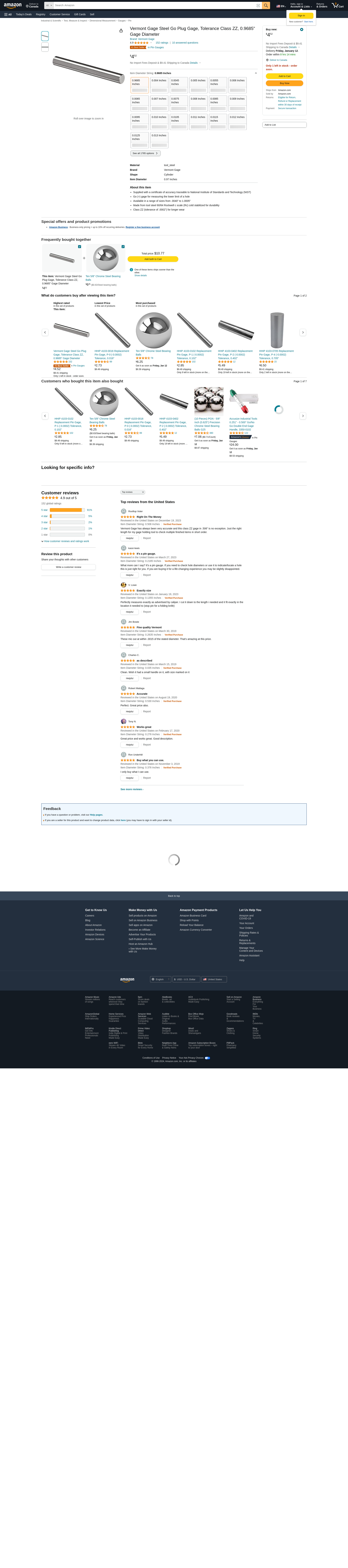 Vermont Gage Steel Go Plug Gage, Tolerance Class ZZ, 0.9685" Gage Diameter