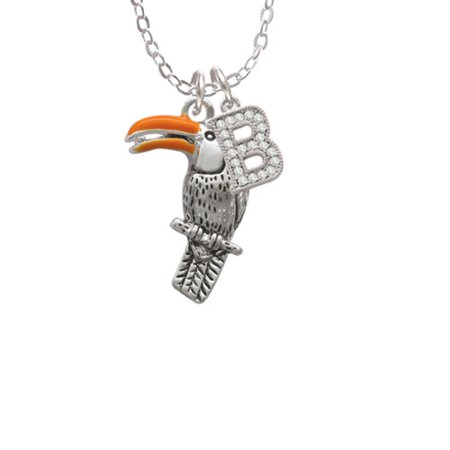 Silver Tone Toucan - B - Crystal Initial Sophia Necklace. Silver Tone, hand enameled charms. Charm size is approx. 0.94 x 0.59 x 0.14 inches (HxWxD) including loop. 1.5mm Silver Tone Dainty Cable Chain Necklace: 18 inches with 1 inch extender chain. Crystal Initial is approximately 0.38 Inches long not including loop. Lobster Claw Clasp. Dainty and delicate, the Sophia Collection is about wearing an expression of what she cherishes, with just a little bling to brighten her day. Please notify us if you would like an initial not listed here. We are a family owned company in the U.S.A since 1977. PLEASE NOTE: Our products are lead safe, but are not intended for children 14 years and younger.