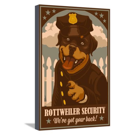 <ul> <li>Title: Rottweiler - Retro Security Ad</li> <li>Artist: Lantern Press</li> <li>Product Type: Stretched Canvas Print</li> <li>Expertly finished and printed on artist-grade cotton</li> <li>Stretched & Ready to Hang</li> <li>Handcrafted in the USA</li> </ul>