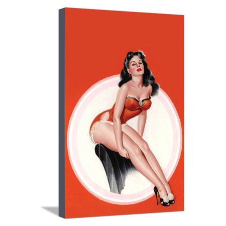 <ul> <li>Title: Eyeful Magazine; Brunette in a Red Bathing Suit</li> <li>Artist: Peter Driben</li> <li>Product Type: Stretched Canvas Print</li> <li>Expertly finished and printed on artist-grade cotton</li> <li>Stretched & Ready to Hang</li> <li>Handcrafted in the USA</li> </ul>